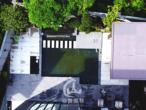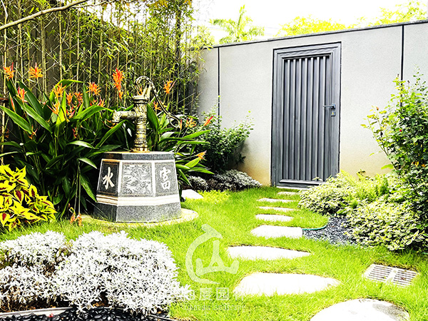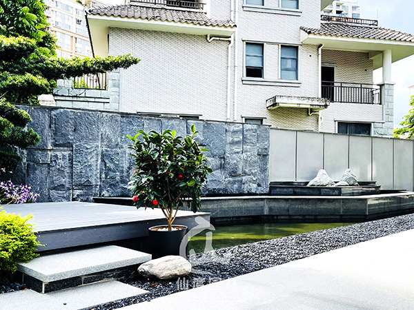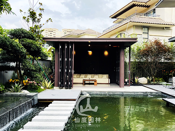 后院以居家生活和朋友聚会功能为主,中间是整个院子的主景景观鱼池,流水墙整面细流缓缓而下,旁边的花岗岩汀步仿似漂浮于水面;铝合金制作的休闲茶亭可敞开可围蔽,在广东的气候条件下,这样的茶亭才能达到最长的使用时间。后院以居家生活和朋友聚会功能为主,中间是整个院子的主景景观鱼池,流水墙整面细流缓缓而下,旁边的花岗岩汀步仿似漂浮于水面;铝合金制作的休闲茶亭可敞开可围蔽,在广东的气候条件下,这样的茶亭才能达到最长的使用时间。